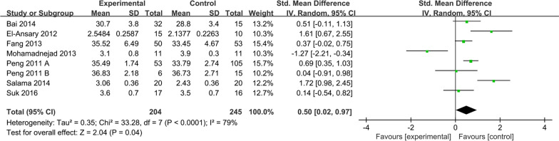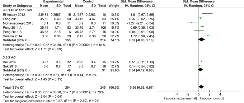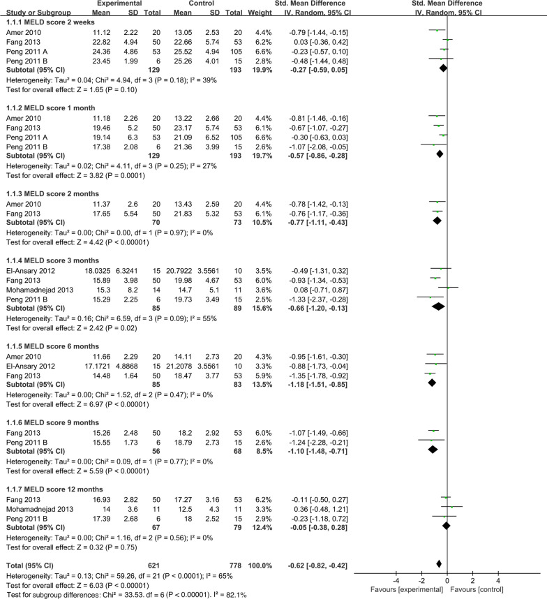 Results: A total of 11 clinical trials met the selection criteria. The pooled analysis' findings demonstrated that both primary and secondary indicators had improved. Compared to the control group, infusion of mesenchymal stem cells significantly increased ALB levels in 2 weeks, 1 month, 3 months, and 6 months, and significantly decreased MELD score in 1 month, 2 months, and 6 months, according to a subgroup analysis using a random-effects model. Additionally, the hepatic arterial injection favored improvements in MELD score and ALB levels. Importantly, none of the included studies indicated any severe adverse effects.