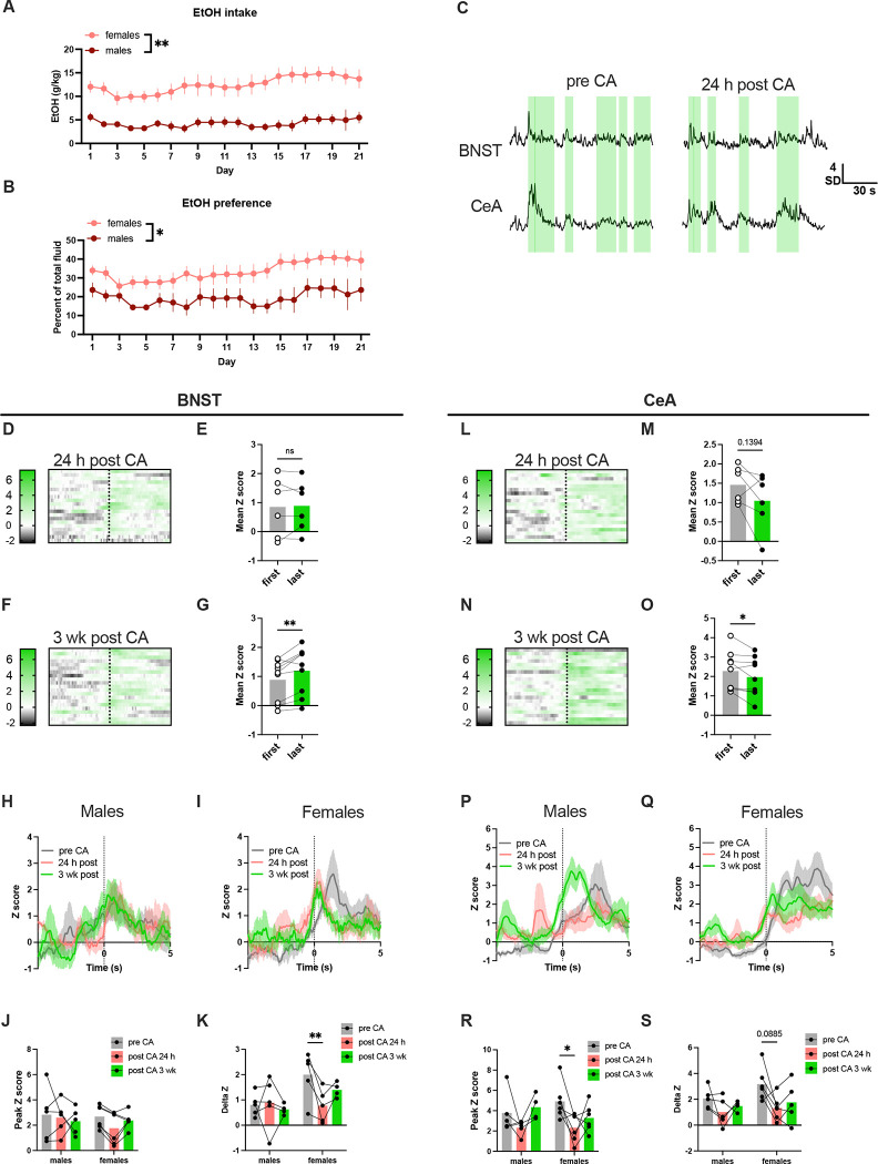 Acute and chronic alcohol modulation of extended amygdala calcium dynamics