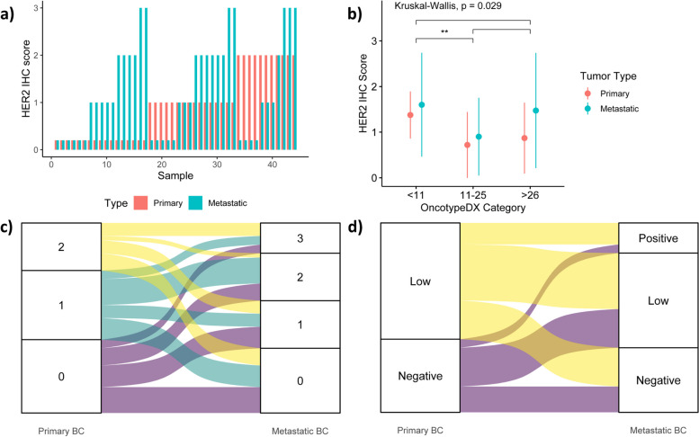 Impact of the OncotypeDX score and HER2 RNA PCR levels on HER2-low IHC levels in primary and metastasized tumors