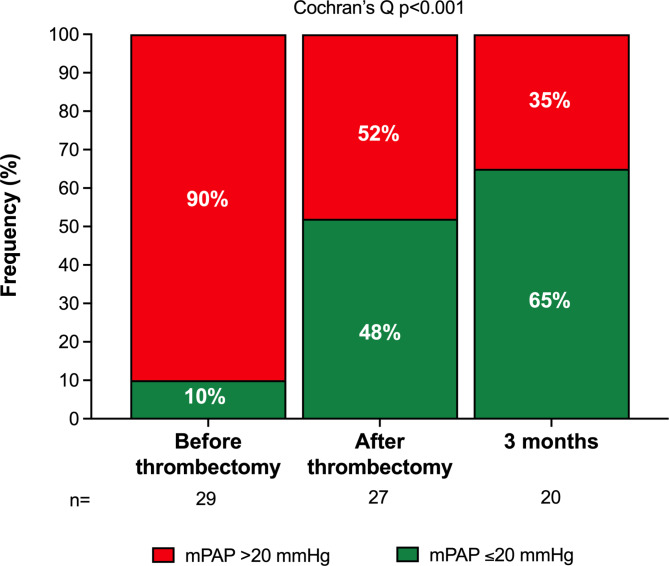 Conclusions: Mechanical thrombectomy for acute PE was safe and immediately reduced PAP and improved right heart function. The reduction in PAP was maintained at three months follow-up.