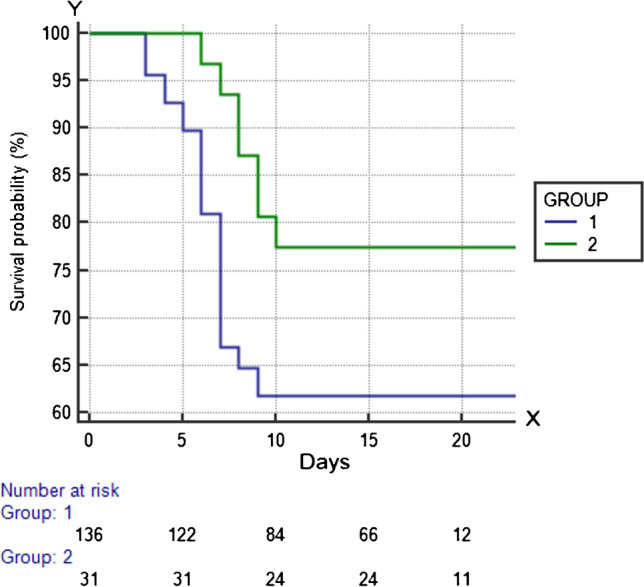 Material and methods: The present prospective, open, multicenter comparative study for the period 04/01/2022 to 12/01/2023 included 167 patients with acute thrombosis of the lower limb arteries against the background of the XBB.1.5 ("Kraken") subvariant of the XBB.1.5 ("Kraken") subvariant of Omicron Sars-cov-2.Depending on the treatment strategy, two groups were formed: group 1 - open thrombectomy (n = 136) and drug treatment with an anticoagulant (unfractionated heparin in a therapeutic dosage) and an antiplatelet (acetylsalicylic acid 125 mg once a day); group 2 - only drug therapy (n = 31). This group consisted of patients who refused surgical revascularization and were on a prophylactic dose of unfractionated heparin (5000 U 3 times a day subcutaneously). On the development of acute arterial thrombosis, 80 U/kg (maximum 5000 U) of unfractionated heparin was injected intravenously in a bolus, followed by transfer to intravenous infusion using an infusion pump with an initial rate of 18 U/kg per hour under control of activated partial thromboplastin time. Analgesic and antiplatelet therapy was also prescribed (acetylsalicylic acid 125 mg once a day).