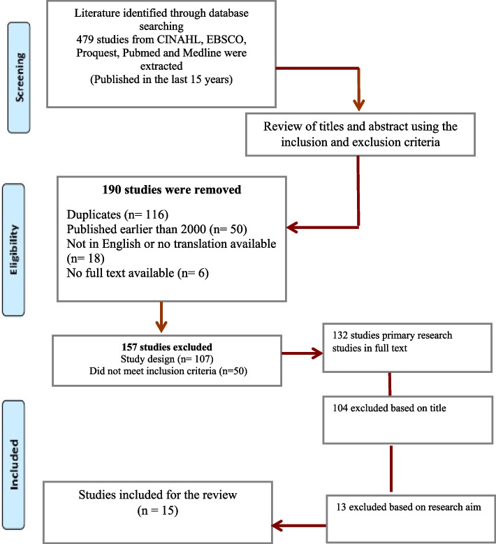 Methodology: This study employed a literature-based design. Five academic databases, including CINAHL, EBSCO, ProQuest, PubMed and Medline, were utilised to extract relevant studies using appropriate keywords and Boolean operators. Studies published in the last 15 years (2005-2020) were included in the search. Studies were retrieved using the Exclusion and Inclusion criteria. The Critical Appraisal Skills Programme (CASP) was used to critically appraise the studies.
