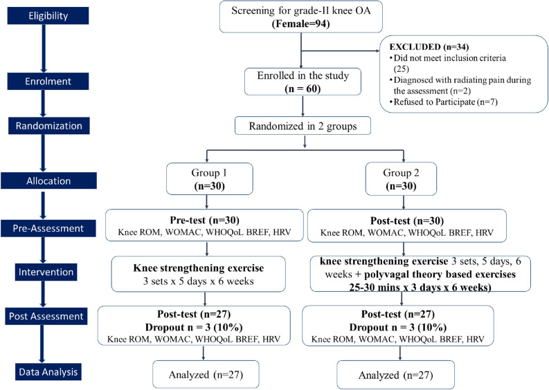 Exploring the impact of integrated polyvagal exercises and knee reinforcement in females with grade II knee osteoarthritis: a randomized controlled trial