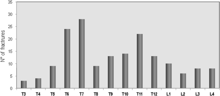 Methods: In a single-center cohort of 382 patients with sarcoidosis (55.8 ± 11.6 years) we evaluated bone mineral density at lumbar spine, at femoral neck and at total hip and the presence of MOF. Lung function measurements including diffusion capacity for carbon monoxide (DLCO) were assessed. Chest X-rays were performed and radiological staging was done by Scadding score.