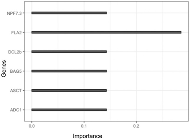 Plants have diverse molecular mechanisms to protect themselves from biotic and abiotic stressors and adapt to changing environments. To uncover the genetic potential of plants, it is crucial to understand how they adapt to adverse conditions by analyzing their genomic data. We analyzed RNA-Seq data from different tomato genotypes, tissue types, and drought durations. We used a time series scale to identify early and late drought-responsive gene modules and applied a machine learning method to identify the best responsive genes to drought. We demonstrated six candidate genes of tomato viz. Fasciclin-like arabinogalactan protein 2 (FLA2), Amino acid transporter family protein (ASCT), Arginine decarboxylase 1 (ADC1), Protein NRT1/PTR family 7.3 (NPF7.3), BAG family molecular chaperone regulator 5 (BAG5) and Dicer-like 2b (DCL2b) were responsive to drought. We constructed gene association networks to identify their potential interactors and found them drought-responsive. The identified candidate genes can help to explore the adaptation of tomato plants to drought. Furthermore, these candidate genes can have far-reaching implications for molecular breeding and genome editing in tomatoes, providing insights into the molecular mechanisms that underlie drought adaptation. This research underscores the importance of the genetic basis of plant adaptation, particularly in changing climates and growing populations.