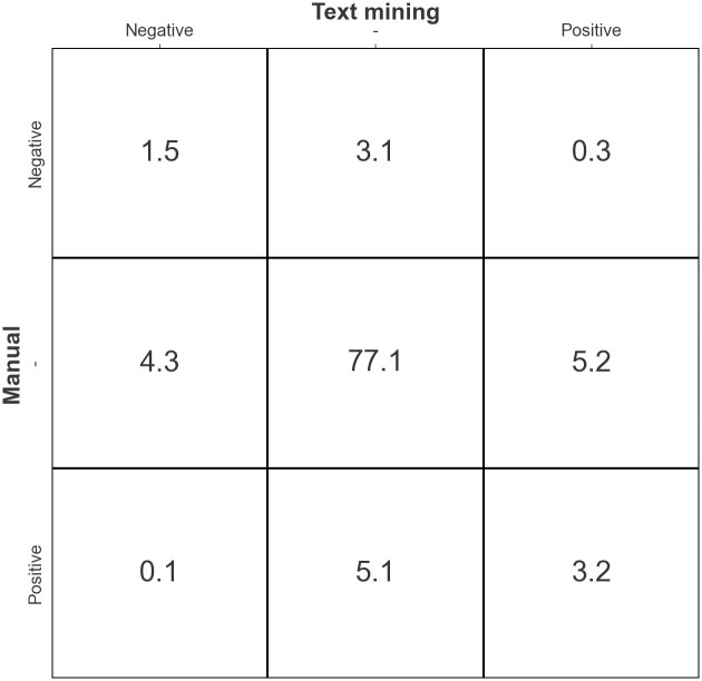 Results: An accuracy analysis revealed that more than 80% of the text segments were assigned the same themes and sentiment using both text mining and manual approaches. Interviews coded with text mining demonstrated higher consistency compared to those coded manually. Expert feedback identified certain limitations in both the text mining and manual approaches.