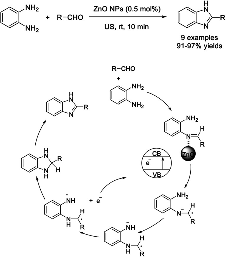 Benzimidazoles are a class of heterocyclic compounds in which a benzene ring is fused to the 4 and 5 positions of an imidazole ring. Benzimidazole refers to the parent compound, while benzimidazoles are a class of heterocyclic compounds having similar ring structures, but different substituents. Benzimidazole derivatives possess a wide range of bioactivities including antimicrobial, anthelmintic, antiviral, anticancer, and antihypertensive activities. Many compounds possessing a benzimidazole skeleton have been employed as drugs in the market. The application of benzimidazoles in other fields has also been documented. The synthesis of benzimidazole derivatives has attracted much attention from chemists and numerous articles on the synthesis of this class of heterocyclic compound have been reported over the years. The condensation between 1,2-benzenediamine and aldehydes has received intensive interest, while many novel methods have been developed. In this article, we will give a comprehensive review of studies on the synthesis of benzimidazole, which date back to 2013. We have also tried to describe reaction mechanisms as much as we can. The work might be useful for chemists who work in the synthesis of heterocycles or drug chemistry.