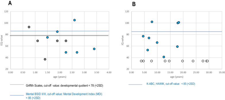 Methods: This cross-sectional, monocenter study included pediatric TSC patients who received multidisciplinary long-term care with a last visit between 2005 and 2019. Neurological manifestations and cognitive development (BSID, K-ABC) were analyzed in relation to age and type of mutation.