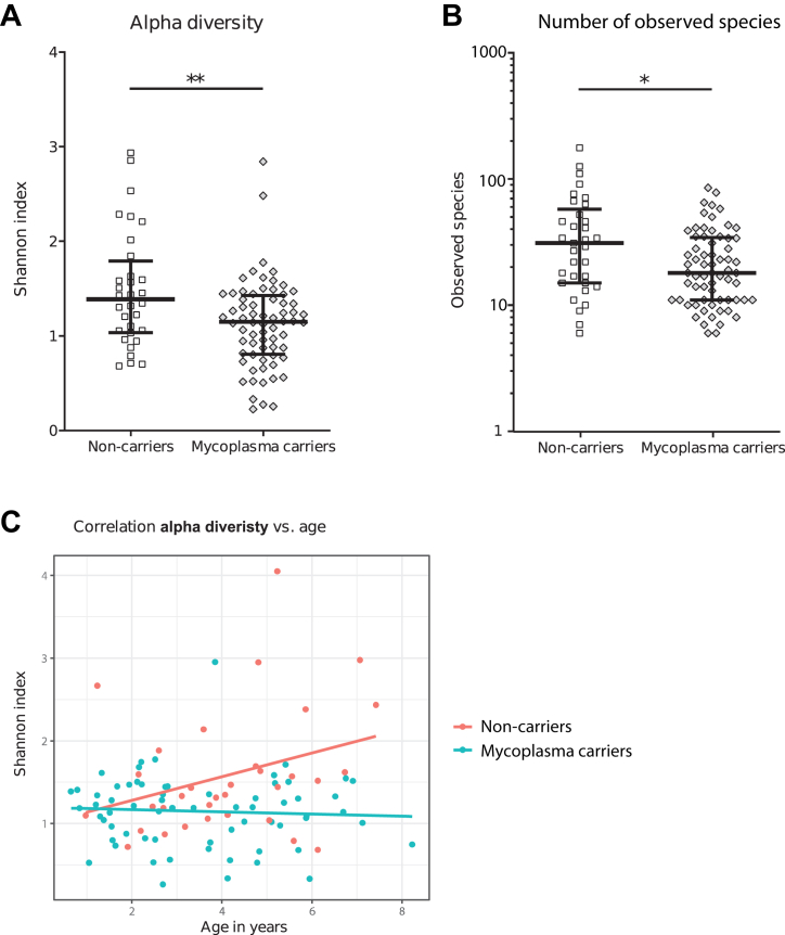 Interpretation: M.pneumoniae carriage is highly prevalent in children with recurrent infections and carriers have a less diverse microbiota with an overrepresentation of disease-associated microbiota members compared to non-carriers. Given the high prevalence of M.pneumoniae carriage and the strong association with H. influenzae, we recommend appropriate antibiotic coverage of M.pneumoniae and H. influenzae in case of suspected pneumonia in children with recurrent respiratory tract infections or their family members.