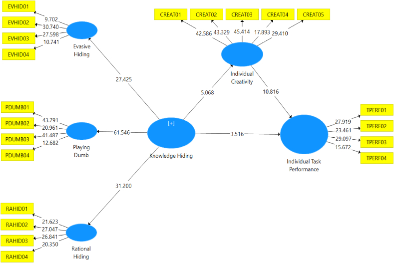 This study investigates the association of knowledge hiding with individual task performance and the mediation role of individual creativity. It focuses on how employees' knowledge-hiding behavior can influence their task performance and how individual creativity can alleviate the negative consequences of knowledge-hiding. Data was collected from 256 employees working in financing companies in Indonesia. Hypothesis testing was conducted using the Structural Equation Model - Partial Least Square (SEM-PLS) model. The findings showed that all indicators significantly represented the dimensions of evasive hiding, playing dumb, and rationalized hiding, which collectively constitutes knowledge hiding. Furthermore, the study confirmed that individual creativity served as a mediator in the relationship between knowledge hiding and individual task performance. The implications of this study underscore the importance of addressing knowledge-hiding behavior within organizations and promoting individual creativity as a means to overcome the negative consequences and enhance task performance.
