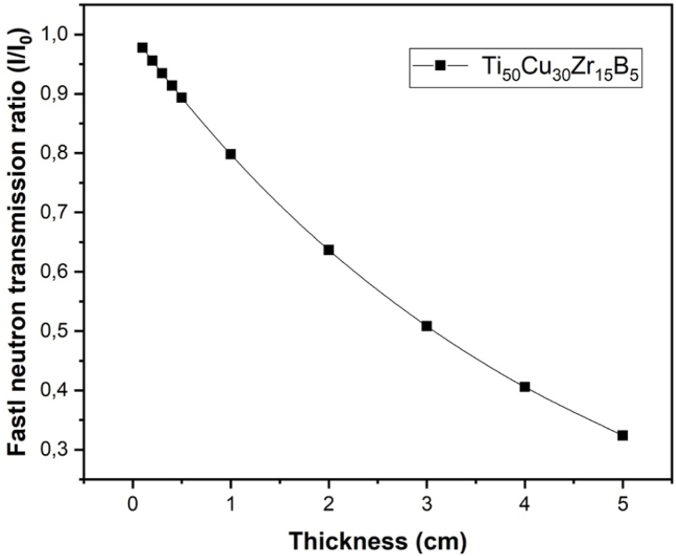 The significance of radiation shielding is on the rise due to the expanding areas exposed to radiation emissions. Consequently, there is a critical need to develop metal alloys and composites that exhibit excellent capabilities in absorbing neutron and gamma rays for effective radiation shielding. Low-density Ti-based alloys with controlled structural properties can be used for radiation protection purposes. The present research investigates boron-doped Ti-based alloy, Ti50Cu30Zr15B5, which is synthesized by arc melting technique, and its structural, mechanical properties, neutron, and gamma-ray transmission rate were investigated. Monte Carlo N-Particle simulation (MCNP6.2) code is used for calculating the Thermal (2.53 10-8 MeV) and fast (2 MeV) neutron transmission ratio (I/I0) dependent on the sample thickness. The Phy-x program is employed for calculating the gamma-ray LAC, MAC, HVL, TVL, and MFP values. The calculated neutron shielding performance parameters of Ti50Cu30Zr15B5 alloy were compared with materials in the literature. It was found that Ti50Cu30Zr15B5 alloy demonstrated impressive physical characteristics, suggesting that it can serve as a promising alloy for neutron and gamma-ray shielding applications.