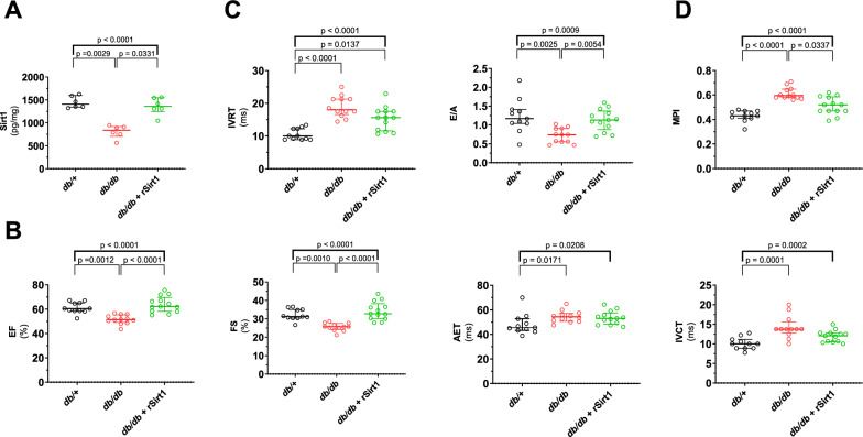 Methods: db/db mice, an established model of MCM, were supplemented with intraperitoneal rSirt1 or vehicle for 4 weeks and compared with their db/ + heterozygous littermates. At the end of treatment, cardiac function was assessed by cardiac ultrasound and left ventricular samples were collected and processed for molecular analysis. Transcriptional changes were evaluated using a custom PCR array. Lipidomic analysis was performed by mass spectrometry. H9c2 cardiomyocytes exposed to hyperglycaemia and treated with rSirt1 were used as in vitro model of MCM to investigate the ability of rSirt1 to directly target cardiomyocytes and modulate malondialdehyde levels and caspase 3 activity. Myocardial samples from diabetic and nondiabetic patients were analysed to explore Sirt1 expression levels and signaling pathways.