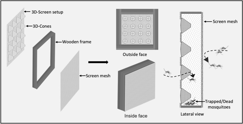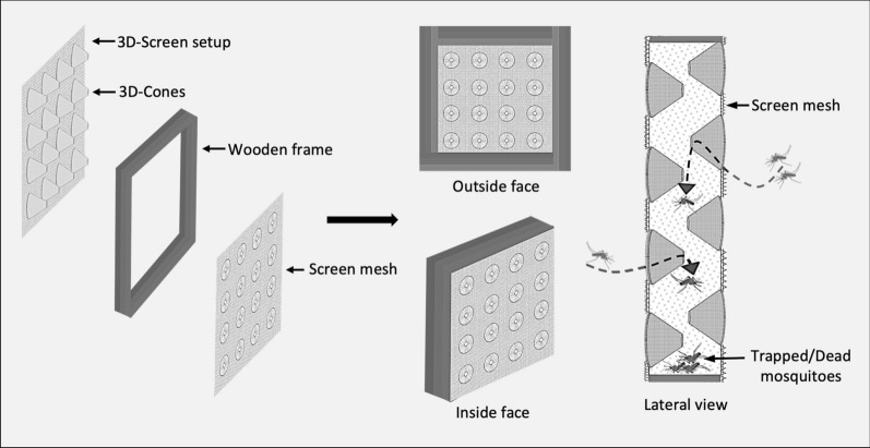 Conclusions: The 3D-WDST proved effective in capturing malaria vectors under semi-field experimental hut conditions. Using 3D-Screens on both sides of the window openings was more effective than using a single-sided 3D-Screen. Additionally, both hand- and machine-made 3D structures exhibited equally effective performance, supporting the production of durable cones on an industrial scale for future large-scale studies evaluating the 3D-WDST at the community level.