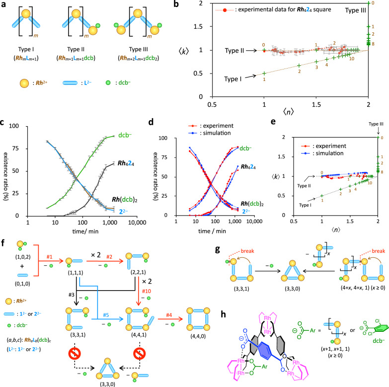 Pathway selection principles in reversible reaction networks such as molecular self-assembly have not been established yet, because achieving kinetic control in reversible reaction networks is more complicated than in irreversible ones. In this study, we discovered that coordination squares consisting of cis-protected dinuclear rhodium(II) corner complexes and linear ditopic ligands are assembled under kinetic control, perfectly preventing the corresponding triangles, by modulating their energy landscapes with a weak monotopic carboxylate ligand (2,6-dichlorobenzoate: dcb-) as the leaving ligand. Experimental and numerical approaches revealed the self-assembly pathway where the cyclization step to form the triangular complex is blocked by dcb-. It was also found that one of the molecular squares assembled into a dimeric structure owing to the solvophobic effect, which was characterized by nuclear magnetic resonance spectroscopy and single-crystal X-ray analysis.