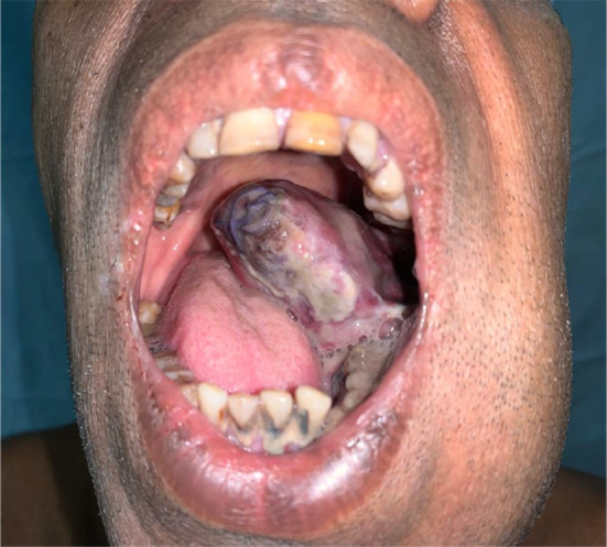 Brown Tumour or Osteitis fibrous cystic or Von-Recklinghausen disease of bone is a non-malignant condition due to abnormal metabolism of bones in hyperparathyroidism. Although pathognomonic of hyperparathyroidism, brown tumours are rare and only case reports are found in literature. We report a case of brown tumour of mandible with recurrent episodes of bleeding. A 46 year old male patient presented in emergency with bleeding from ulceroproliferative mass from left floor of mouth. After control of bleeding, radiological, laboratory and histopathological investigations were done that led to the diagnosis of brown tumour of mandible in the presence of parathyroid adenoma of left lower parathyroid gland. Left upper and lower parthyroidectomy was done with segmental resection of mandible with mass and titanium plating. Brown tumour of facial bones is a rare entity. Very rarely it can reach enormous sizes to cause bleeding. Although parathyroidectomy and correction of parathormone levels cause regression of small tumours, large brown tumours with complications should be managed with surgical resection and reconstruction.