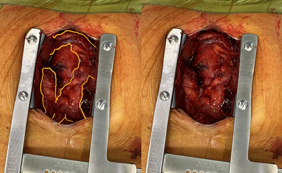 Case presentation: A 62 year-old male presented to hospital with exertional angina and a coronary angiogram found severe three-vessel coronary artery disease with preserved left ventricular function. He underwent an uncomplicated triple coronary artery bypass surgery. Over the following hours in the cardiac intensive care unit, the patient had a climbing serum lactate level and increasing vasopressor requirements. On investigations, there was evidence of compression of the right heart. The patient was taken back to the operating room where very little clot or bleeding was identified, rather there was significant amounts of mediastinal fat surrounding the heart which was subsequently resected with wide margins. The patient had complete resolution of their symptoms and an uncomplicated postoperative course thereafter.