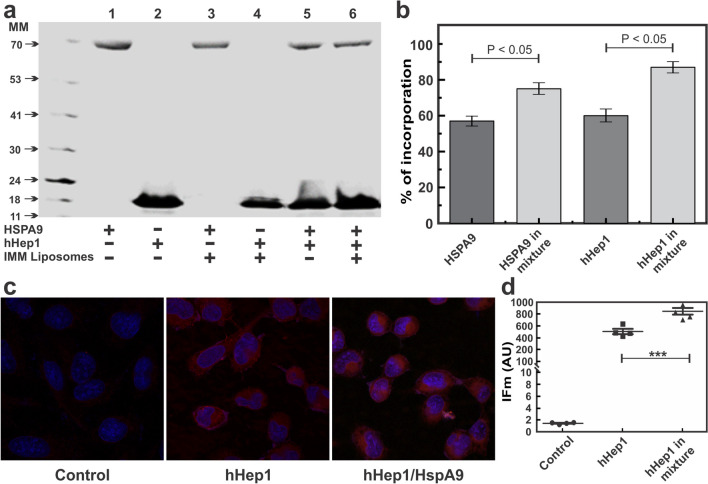 Human Hsp70-escort protein 1 (hHep1) is a cochaperone that assists in the function and stability of mitochondrial HSPA9. Similar to HSPA9, hHep1 is located outside the mitochondria and can interact with liposomes. In this study, we further investigated the structural and thermodynamic behavior of interactions between hHep1 and negatively charged liposomes, as well as interactions with cellular membranes. Our results showed that hHep1 interacts peripherally with liposomes formed by phosphatidylserine and cardiolipin and remains partially structured, exhibiting similar affinities for both. In addition, after being added to the cell membrane, recombinant hHep1 was incorporated by cells in a dose-dependent manner. Interestingly, the association of HSPA9 with hHep1 improved the incorporation of these proteins into the lipid bilayer. These results demonstrated that hHep1 can interact with lipids also present in the plasma membrane, indicating roles for this cochaperone outside of mitochondria.
