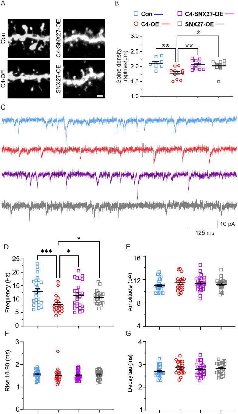 During development, activation of the complement pathway, an extracellular proteolytic cascade, results in microglia-dependent synaptic elimination via complement receptor 3 (CR3). Here, we report that decreased connectivity caused by overexpression of C4 (C4-OE), a schizophrenia-associated gene, is CR3 independent. Instead, C4-OE triggers GluR1 degradation through an intracellular mechanism involving endosomal trafficking protein SNX27, resulting in pathological synaptic loss. Moreover, the connectivity deficits associated with C4-OE were rescued by increasing levels of SNX27, linking excessive complement activity to an intracellular endolysosomal recycling pathway affecting synapses.