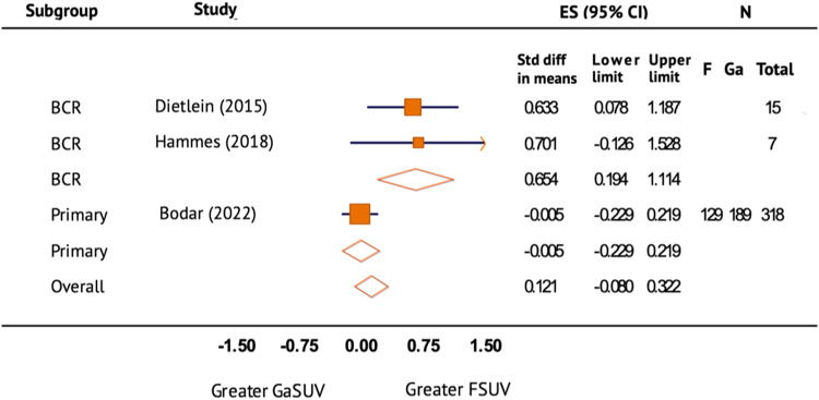 Methods: A critical review of MEDLINE, EMBASE, PubMed and Web of Science databases was performed in May 2023 according to the Preferred Reporting Items for Systematic Review and Meta-analysis (PRISMA) statement. Studies that directly compared 18F-based PSMA radiotracers and [68Ga]Ga-PSMA-11 in terms of the normal organ SUV or the lesion SUV or the detection rate were assessed. Quality was assessed using the Quality Assessment of Diagnostic Accuracy Studies-2 (QUADAS-2).