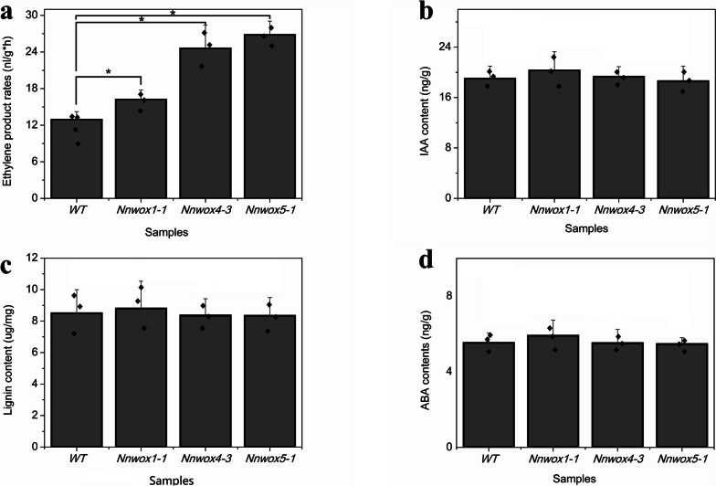 Conclusions: NnWOX1-1, NnWOX4-3, and NnWOX5-1 influence root formation, stem development, and stress adaptation in transgenic Arabidopsis plants by affecting the transcription of multiple genes. Among these, changes in gene expression involving ethylene metabolism and responses likely critically affect the development of Arabidopsis plants. In addition, ethylene may represent an important factor affecting AR formation in lotus seedlings.