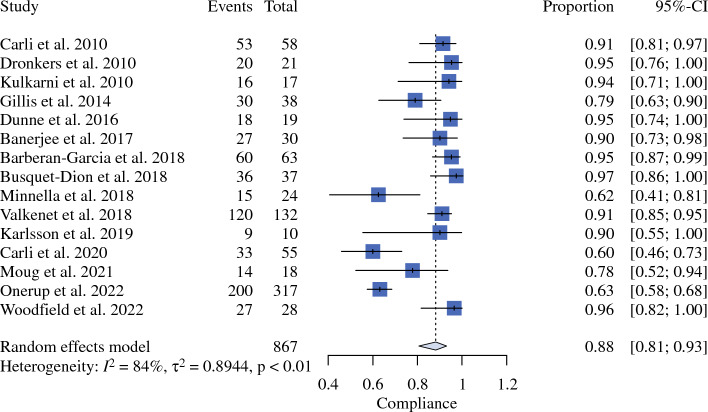 Conclusions: Physical prehabilitation reduces the overall morbidity rate, pneumonia, and length of stay. The most relevant effect of prehabilitation requires the simultaneous use of AE and IMT.