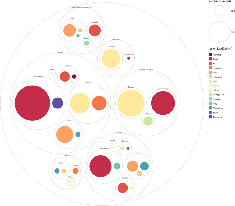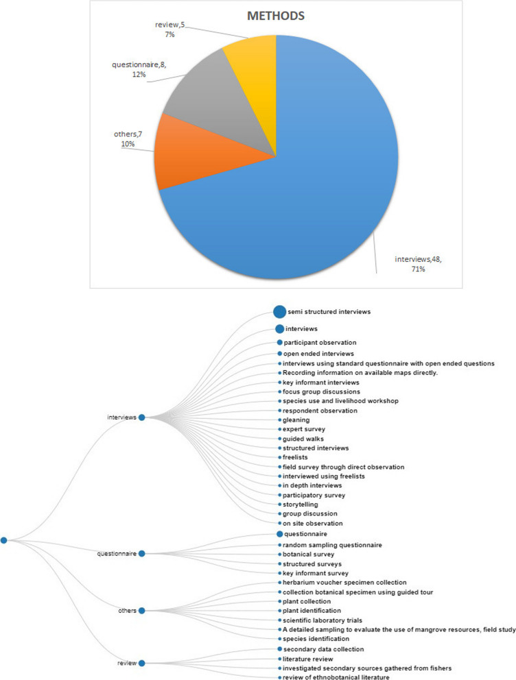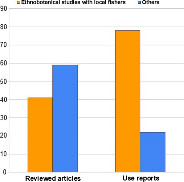 Results: In the novel categorization of fishery-related uses we proposed, the most mentioned were for fishing and building/repair of fishing artifacts and habitat-related uses, while the records of plants related to fiber uses, providing aid in fishing management and species causing problems, were among the least mentioned. Semi-structured interview is most commonly used with local resource users, especially fishery experts, in exploring perceptions on plant use within traditional fishing communities. Diversity was high in all the recorded families, but most were reported locally.