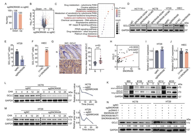 Conclusions: Therefore, the SNORA56/28S rRNA/GCLC axis stimulates CRC progression by inhibiting the accumulation of cellular peroxides, and it may provide biomarker and therapeutic applications in CRC.