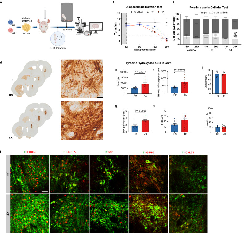 Current differentiation protocols for generating mesencephalic dopaminergic (mesDA) neurons from human pluripotent stem cells result in grafts containing only a small proportion of mesDA neurons when transplanted in vivo. In this study, we develop lineage-restricted undifferentiated stem cells (LR-USCs) from pluripotent stem cells, which enhances their potential for differentiating into caudal midbrain floor plate progenitors and mesDA neurons. Using a ventral midbrain protocol, 69% of LR-USCs become bona fide caudal midbrain floor plate progenitors, compared to only 25% of human embryonic stem cells (hESCs). Importantly, LR-USCs generate significantly more mesDA neurons under midbrain and hindbrain conditions in vitro and in vivo. We demonstrate that midbrain-patterned LR-USC progenitors transplanted into 6-hydroxydopamine-lesioned rats restore function in a clinically relevant non-pharmacological behavioral test, whereas midbrain-patterned hESC-derived progenitors do not. This strategy demonstrates how lineage restriction can prevent the development of undesirable lineages and enhance the conditions necessary for mesDA neuron generation.