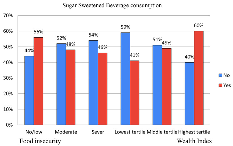 Result: Half (50.38%) [95%CI; 46.04, 54.71] of women consumed SSBs. Sociodemographic characteristics like primary education (AOR = 1.35; 95%CI: 1.05-1.74), secondary education (AOR = 1.46; 95%CI: 1.13-1.90), being employed (AOR = 1.28; 95%CI: 1.05-1.56),and dietary characteristics like consumption of savory and fried snack (AOR = 1.61; 95%CI = 1.24-2.09), achieved minimum dietary diversity (AOR = 1.67; 95%CI: 1.38-2.01), moderate household food insecurity (AOR = 0.74, 95% CI: 0.58, 0.95), and sever household food insecurity (AOR = 0.71, 95% CI: 0.56, 0.89) had significant statistical association with SSBs consumption.
