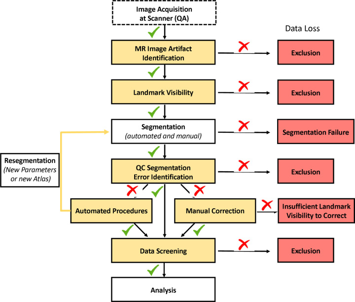 Inquiries into properties of brain structure and function have progressed due to developments in magnetic resonance imaging (MRI). To sustain progress in investigating and quantifying neuroanatomical details in vivo, the reliability and validity of brain measurements are paramount. Quality control (QC) is a set of procedures for mitigating errors and ensuring the validity and reliability of brain measurements. Despite its importance, there is little guidance on best QC practices and reporting procedures. The study of hippocampal subfields in vivo is a critical case for QC because of their small size, inter-dependent boundary definitions, and common artifacts in the MRI data used for subfield measurements. We addressed this gap by surveying the broader scientific community studying hippocampal subfields on their views and approaches to QC. We received responses from 37 investigators spanning 10 countries, covering different career stages, and studying both healthy and pathological development and aging. In this sample, 81% of researchers considered QC to be very important or important, and 19% viewed it as fairly important. Despite this, only 46% of researchers reported on their QC processes in prior publications. In many instances, lack of reporting appeared due to ambiguous guidance on relevant details and guidance for reporting, rather than absence of QC. Here, we provide recommendations for correcting errors to maximize reliability and minimize bias. We also summarize threats to segmentation accuracy, review common QC methods, and make recommendations for best practices and reporting in publications. Implementing the recommended QC practices will collectively improve inferences to the larger population, as well as have implications for clinical practice and public health.