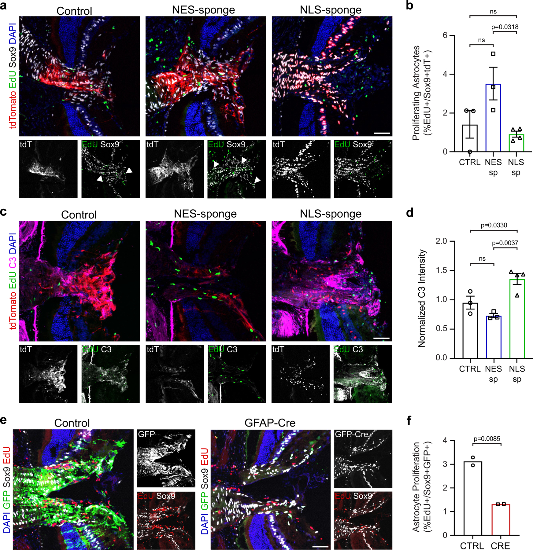 The intrinsic mechanisms that regulate neurotoxic versus neuroprotective astrocyte phenotypes and their effects on central nervous system degeneration and repair remain poorly understood. Here we show that injured white matter astrocytes differentiate into two distinct C3-positive and C3-negative reactive populations, previously simplified as neurotoxic (A1) and neuroprotective (A2)1,2, which can be further subdivided into unique subpopulations defined by proliferation and differential gene expression signatures. We find the balance of neurotoxic versus neuroprotective astrocytes is regulated by discrete pools of compartmented cyclic adenosine monophosphate derived from soluble adenylyl cyclase and show that proliferating neuroprotective astrocytes inhibit microglial activation and downstream neurotoxic astrocyte differentiation to promote retinal ganglion cell survival. Finally, we report a new, therapeutically tractable viral vector to specifically target optic nerve head astrocytes and show that raising nuclear or depleting cytoplasmic cyclic AMP in reactive astrocytes inhibits deleterious microglial or macrophage cell activation and promotes retinal ganglion cell survival after optic nerve injury. Thus, soluble adenylyl cyclase and compartmented, nuclear- and cytoplasmic-localized cyclic adenosine monophosphate in reactive astrocytes act as a molecular switch for neuroprotective astrocyte reactivity that can be targeted to inhibit microglial activation and neurotoxic astrocyte differentiation to therapeutic effect. These data expand on and define new reactive astrocyte subtypes and represent a step towards the development of gliotherapeutics for the treatment of glaucoma and other optic neuropathies.
