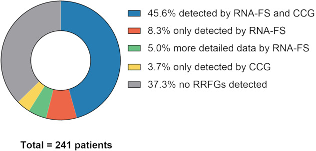 New methods like panel-based RNA fusion sequencing (RNA-FS) promise improved diagnostics in various malignancies. We here analyzed the impact of RNA-FS on the initial diagnostics of 241 cases with pediatric acute myeloid leukemia (AML). We show that, compared to classical cytogenetics (CCG), RNA-FS reliably detected risk-relevant fusion genes in pediatric AML. In addition, RNA-FS strongly improved the detection of cryptic fusion genes like NUP98::NSD1, KMT2A::MLLT10 and CBFA2T3::GLIS2 and thereby resulted in an improved risk stratification in 25 patients (10.4%). Validation of additionally detected non-risk-relevant high confidence fusion calls identified PIM3::BRD1, C22orf34::BRD1, PSPC1::ZMYM2 and ARHGAP26::NR3C1 as common genetic variants and MYB::GATA1 as recurrent aberration, which we here describe in AML subtypes M0 and M7 for the first time. However, it failed to detect rare cytogenetically confirmed fusion events like MNX1::ETV6 and other chromosome 12p-abnormalities. As add-on benefit, the proportion of patients for whom measurable residual disease (MRD) monitoring became possible was increased by RNA-FS from 44.4 to 75.5% as the information on the fusion transcripts' sequence allowed the design of new MRD assays.