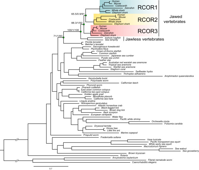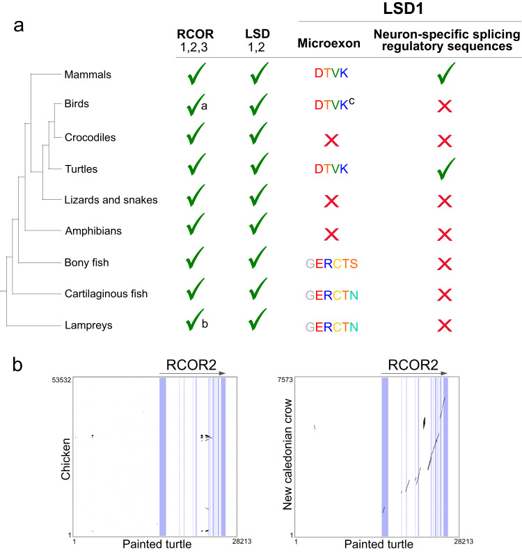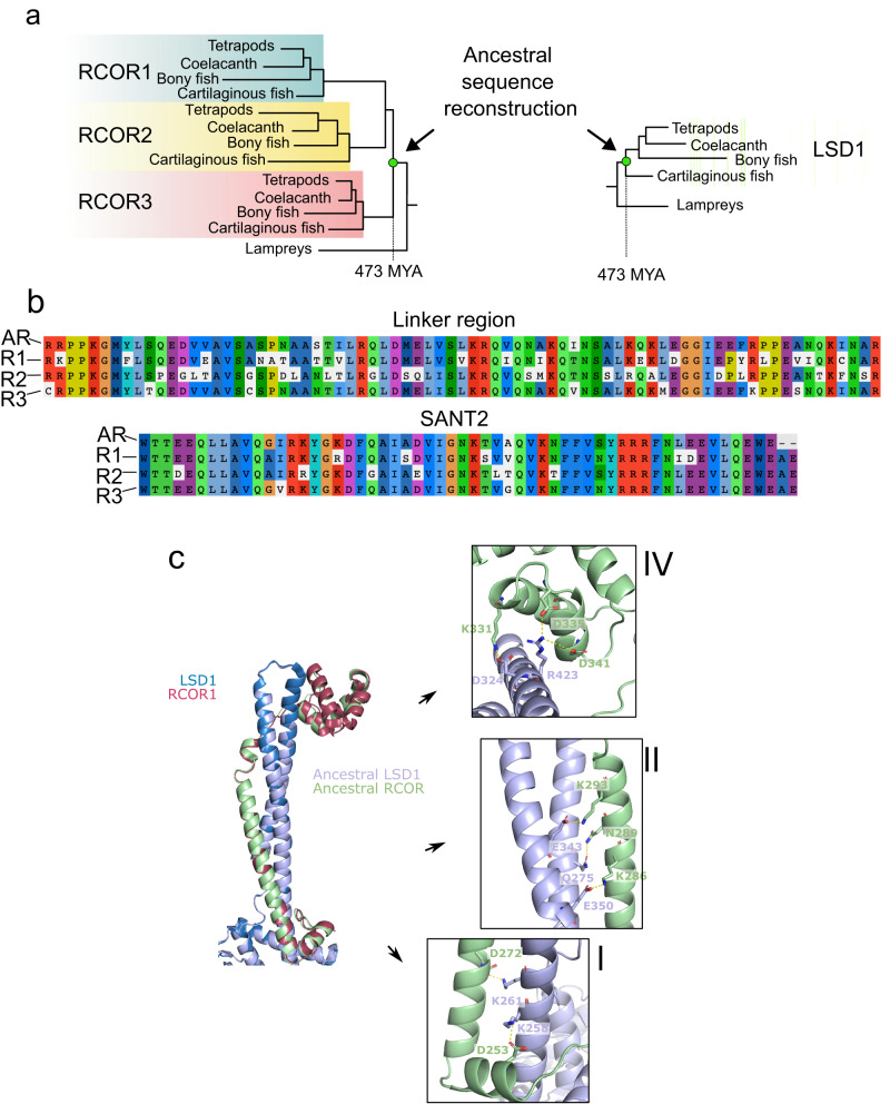 Lysine-specific demethylase 1A (LSD1) binds to the REST corepressor (RCOR) protein family of corepressors to erase transcriptionally active marks on histones. Functional diversity in these complexes depends on the type of RCOR included, which modulates the catalytic activity of the complex. Here, we studied the duplicative history of the RCOR and LSD gene families and analyzed the evolution of their interaction. We found that RCOR genes are the product of the two rounds of whole-genome duplications that occurred early in vertebrate evolution. In contrast, the origin of the LSD genes traces back before to the divergence of animals and plants. Using bioinformatics tools, we show that the RCOR and LSD1 interaction precedes the RCOR repertoire expansion that occurred in the last common ancestor of jawed vertebrates. Overall, we trace LSD1-RCOR complex evolution and propose that animal non-model species offer advantages in addressing questions about the molecular biology of this epigenetic complex.
