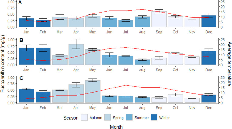 Temporal patterns of fucoxanthin in four species of European marine brown macroalgae