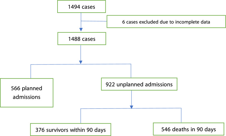 To investigate the occurrence and 90-day mortality of cancer patients following unplanned admission to the intensive care unit (ICU), as well as to develop a risk prediction model for their 90-day prognosis. We prospectively analyzed data from cancer patients who were admitted to the ICU without prior planning within the past 7 days, specifically between May 12, 2021, and July 12, 2021. The patients were grouped based on their 90-day survival status, and the aim was to identify the risk factors influencing their survival status. A total of 1488 cases were included in the study, with an average age of 63.2 ± 12.4 years. The most common reason for ICU admission was sepsis (n = 940, 63.2%). During their ICU stay, 29.7% of patients required vasoactive drug support (n = 442), 39.8% needed invasive mechanical ventilation support (n = 592), and 82 patients (5.5%) received renal replacement therapy. We conducted a multivariate COX proportional hazards model analysis, which revealed that BMI and a history of hypertension were protective factors. On the other hand, antitumor treatment within the 3 months prior to admission, transfer from the emergency department, general ward, or external hospital, high APACHE score, diagnosis of shock and respiratory failure, receiving invasive ventilation, and experiencing acute kidney injury (AKI) were identified as risk factors for poor prognosis within 90 days after ICU admission. The average length of stay in the ICU was 4 days, while the hospital stay duration was 18 days. A total of 415 patients died within 90 days after ICU admission, resulting in a mortality rate of 27.9%. We selected 8 indicators to construct the predictive model, which demonstrated good discrimination and calibration. The prognosis of cancer patients who are unplanned transferred to the ICU is generally poor. Assessing the risk factors and developing a risk prediction model for these patients can play a significant role in evaluating their prognosis.