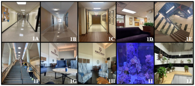 Background: There has been limited research on college campus' green spaces and their benefits to students. This study aimed to identify relationships between a Texas campus's green spaces and students' knowledge of their health benefits and their perception of their health compared to the campus' indoor built environments.