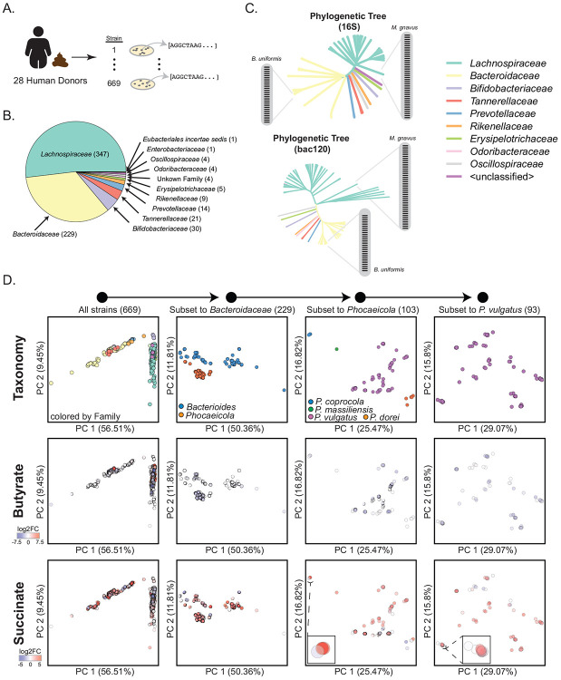 The human gut microbiome contains many bacterial strains of the same species ('strain-level variants'). Describing strains in a biologically meaningful way rather than purely taxonomically is an important goal but challenging due to the genetic complexity of strain-level variation. Here, we measured patterns of co-evolution across >7,000 strains spanning the bacterial tree-of-life. Using these patterns as a prior for studying hundreds of gut commensal strains that we isolated, sequenced, and metabolically profiled revealed widespread structure beneath the phylogenetic level of species. Defining strains by their co-evolutionary signatures enabled predicting their metabolic phenotypes and engineering consortia from strain genome content alone. Our findings demonstrate a biologically relevant organization to strain-level variation and motivate a new schema for describing bacterial strains based on their evolutionary history.