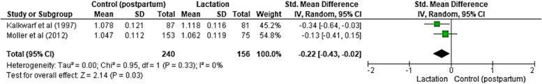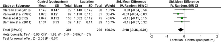 Lumbar spine bone mineral density in women breastfeeding for a period of 4 to 6 months: systematic review and meta-analysis