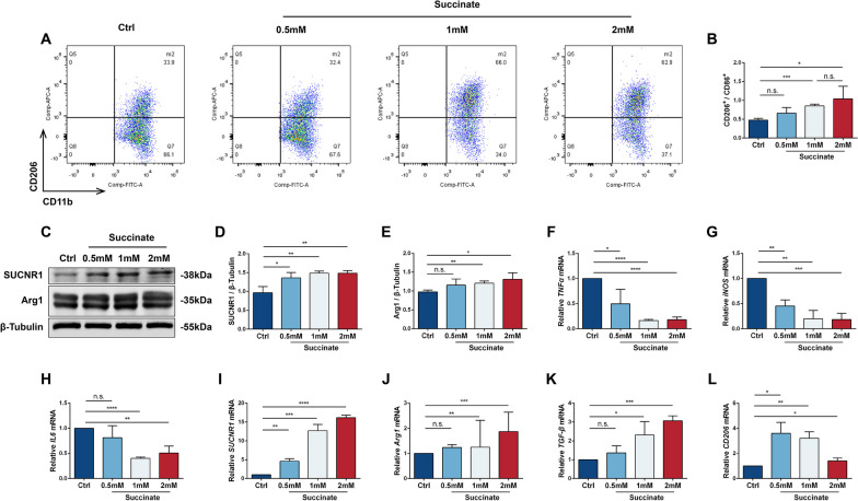 Pathological neovascularization is a pivotal biological process in wet age-related macular degeneration (AMD), retinopathy of prematurity (ROP) and proliferative diabetic retinopathy (PDR), in which macrophages (Mφs) play a key role. Tip cell specialization is critical in angiogenesis; however, its interconnection with the surrounding immune environment remains unclear. Succinate is an intermediate in the tricarboxylic acid (TCA) cycle and was significantly elevated in patients with wet AMD by metabolomics. Advanced experiments revealed that SUCNR1 expression in Mφ and M2 polarization was detected in abnormal vessels of choroidal neovascularization (CNV) and oxygen-induced retinopathy (OIR) models. Succinate-induced M2 polarization via SUCNR1, which facilitated vascular endothelial cell (EC) migration, invasion, and tubulation, thus promoting angiogenesis in pathological neovascularization. Furthermore, evidence indicated that succinate triggered the release of RBP4 from Mφs into the surroundings to regulate endothelial sprouting and pathological angiogenesis via VEGFR2, a marker of tip cell formation. In conclusion, our results suggest that succinate represents a novel class of vasculature-inducing factors that modulate Mφ polarization and the RBP4/VEGFR2 pathway to induce pathological angiogenic signaling through tip cell specialization.