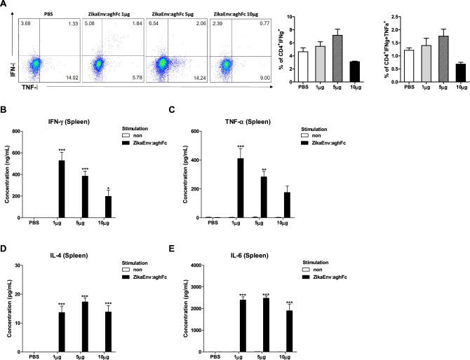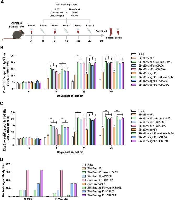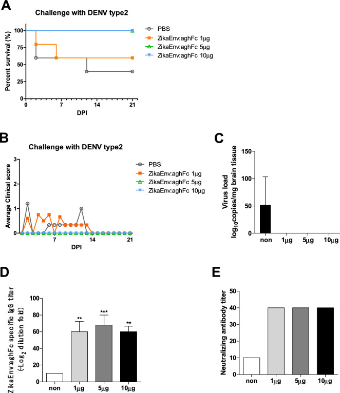 Zika virus infection causes multiple clinical issues, including Guillain-Barré syndrome and neonatal malformation. Vaccination is considered as the only strategy for the prevention of ZIKV-induced clinical issues. This study developed a plant-based recombinant vaccine that transiently expressed the ZIKV envelope protein (ZikaEnv:aghFc) in Nicotiana benthamiana and evaluated the protective immunity afforded by it in immunocompetent mice. ZikaEnv:aghFc induced both humoral and cellular immunity at a low dose (1-5 μg). This immune-inducing potential was enhanced further when adjuvanted CIA09A. In addition, antigen-specific antibodies and neutralizing antibodies were vertically transferred from immunized females to their progeny and afforded both protective immunity to ZIKV and cross-protection to Dengue virus infection. These results suggest that our plant-based ZIKV vaccine provides a safe and efficient protective strategy with a competitive edge.