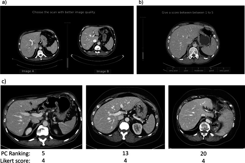 Objectives: The aim of this study is to improve the reliability of subjective IQ assessment using a pairwise comparison (PC) method instead of a Likert scale method in abdominal CT scans.