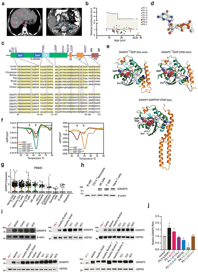 Preserving cells in a functional, non-senescent state is a major goal for extending human healthspans. Model organisms reveal that longevity and senescence are genetically controlled, but how genes control longevity in different mammalian tissues is unknown. Here, we report a new human genetic disease that causes cell senescence, liver and immune dysfunction, and early mortality that results from deficiency of GIMAP5, an evolutionarily conserved GTPase selectively expressed in lymphocytes and endothelial cells. We show that GIMAP5 restricts the pathological accumulation of long-chain ceramides (CERs), thereby regulating longevity. GIMAP5 controls CER abundance by interacting with protein kinase CK2 (CK2), attenuating its ability to activate CER synthases. Inhibition of CK2 and CER synthase rescues GIMAP5-deficient T cells by preventing CER overaccumulation and cell deterioration. Thus, GIMAP5 controls longevity assurance pathways crucial for immune function and healthspan in mammals.