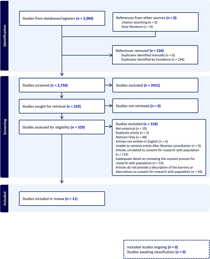 Results: We identified 2,984 records and 11 eligible studies were included after screening. Three key recommendations emerged: addressing tensions in the ethics of consent, embracing wise practices, and using relational approaches to consent. Tensions in consent concerned Research Ethics Board consent requirements that fall short of protecting Indigenous children and communities when culturally incongruent. Wise practices included allowing parents and children to consent together, land-based consenting, and involving communities in decision-making. Using relational approaches to consent embodied community engagement and relationship building while acknowledging consent for Indigenous children cannot be obtained in isolation from family and community.