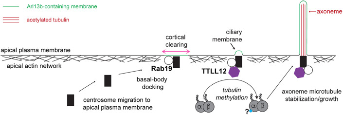 TTLL12 is required for primary ciliary axoneme formation in polarized epithelial cells.bioRxiv [Preprint]. 2023 Jul 25:2023.07.25.550533. doi: 10.1101/2023.07.25.550533. bioRxiv. 2023. Update in: EMBO Rep. 2024 Jan;25(1):198-227. doi: 10.1038/s44319-023-00005-5. PMID: 37546873 Free PMC article. Updated. Preprint.