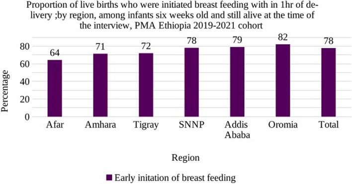 Conclusions: Early initiation of breastfeeding and exclusive breastfeeding is sub-optimal in Ethiopia. Nutrition programmers should consider regional variations in designing intervention programs to enhance breastfeeding practices. Healthcare providers should give special attention to women at risk such as those giving birth through cesarean section and having obstetric complications during delivery.