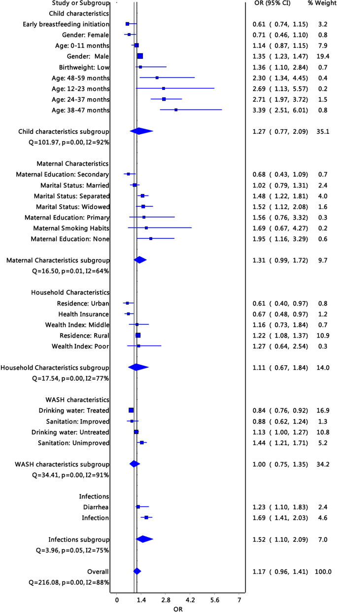 Conclusion: The findings of this study suggest that improving women's status, particularly maternal education and health; access to improved water, sanitation, and hygiene-related factors; and the socioeconomic status of communities, especially those in rural areas, will lay a sound foundation for reducing stunting among under-5 children.