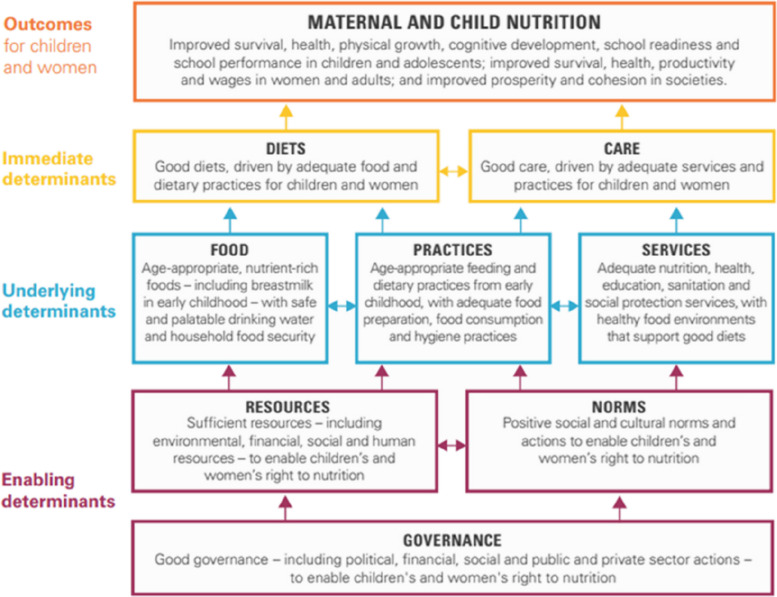 Methods: Utilizing the United Nations International Children's Emergency Fund (UNICEF) framework on maternal and child nutrition, this study systematically evaluated the determinants of child stunting in Rwanda and identified available gaps. Twenty-five peer-reviewed papers and five Demographic and Health Surveys (DHS) reports were included in the final selection of our review, which allowed us to identify determinants such as governance and norms including wealth index, marital status, and maternal education, while underlying determinants were maternal health and nutrition factors, early initiation of breastfeeding, water treatment and sanitation, and immediate factors included infections.