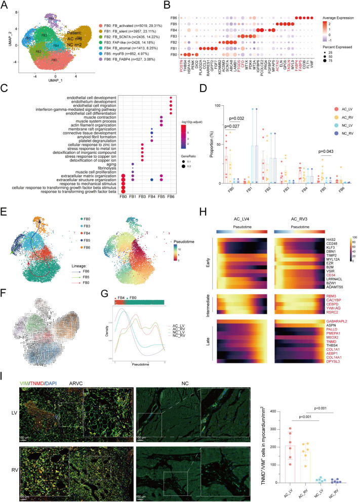 Results: Right ventricle of ARVC was enriched of CCL3+ proinflammatory macrophages and TNMD+ fibroblasts. Fibroblasts were preferentially affected in ARVC and perturbations associated with ARVC overlap with those reside in genetic variants associated with cardiac arrhythmia. Proinflammatory macrophages strongly interact with fibroblast. Pharmacological inhibition of Nod-like receptor protein 3 (NLRP3), a transcriptional factor predominantly expressed by the CCL3+ proinflammatory macrophages and several other myeloid subclusters, could significantly alleviate right ventricular dilation and dysfunction in Dsg2mut/mut mice (an ARVC mouse model).