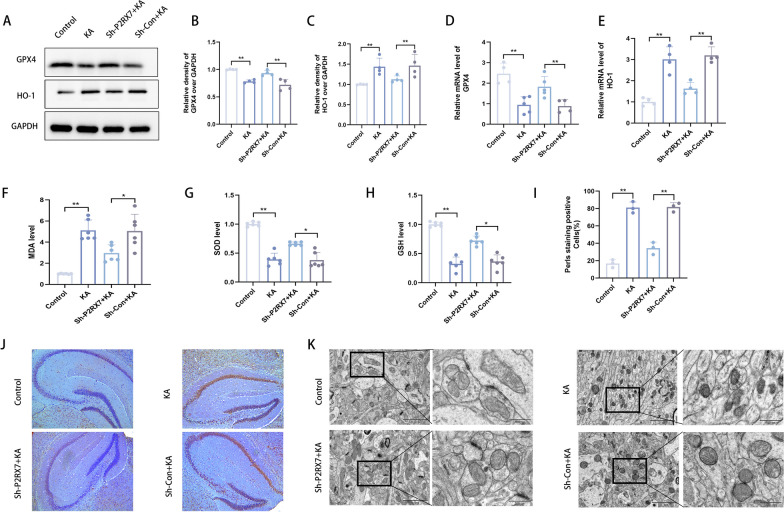 Ferroptosis is an iron-dependent cell death mechanism involving the accumulation of lipid peroxides. As a critical regulator, glutathione peroxidase 4 (GPX4) has been demonstrated to be downregulated in epilepsy. However, the mechanism of ferroptosis in epilepsy remains unclear. In this study, bioinformatics analysis, analysis of epilepsy patient blood samples and cell and mouse experiments revealed strong associations among epilepsy, ferroptosis, microRNA-211-5p and purinergic receptor P2X 7 (P2RX7). P2RX7 is a nonselective ligand-gated homotrimeric cation channel, and its activation mainly increases neuronal activity during epileptic seizures. In our study, the upregulation of P2RX7 in epilepsy was attributed to the downregulation of microRNA (miR)-211-5p. Furthermore, P2RX7 has been found to regulate GPX4/HO-1 by alleviating lipid peroxidation induced by suppression of the MAPK/ERK signaling pathway in murine models. The dynamic decrease in miR-211-5p expression induces hypersynchronization and both nonconvulsive and convulsive seizures, and forebrain miR-211-5p suppression exacerbates long-lasting pentylenetetrazole-induced seizures. Additionally, in this study, induction of miR-211-5p expression or genetic-silencing of P2RX7 significantly reduced the seizure score and duration in murine models through the abovementioned pathways. These results suggest that the miR-211-5p/P2RX7 axis is a novel target for suppressing both ferroptosis and epilepsy.