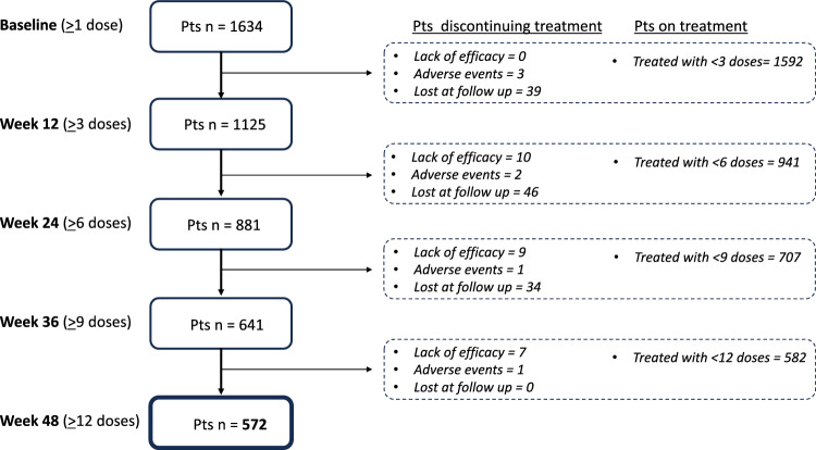 Conclusion: Two-thirds of patients not responding to anti-CGRP mAbs ≤ 24 weeks do respond later, while non-responders ≤ 48 weeks are quite rare (8.7%). These findings suggest to rethink the duration of migraine prophylaxis and the definition of resistant and refractory migraine, currently based on the response after 2-3 months of treatment.